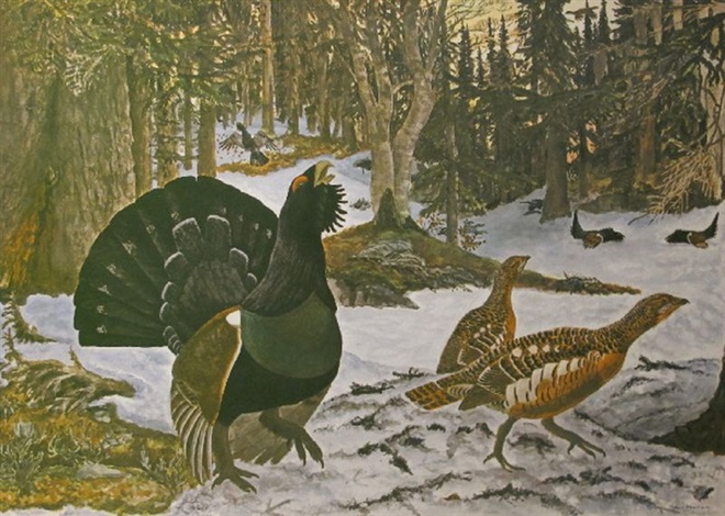 Le grand tétras (tetrao urogallus), ou grand coq de bruyère, est un gros gallinacé vivant en montagne dans les forêts de conifères.
